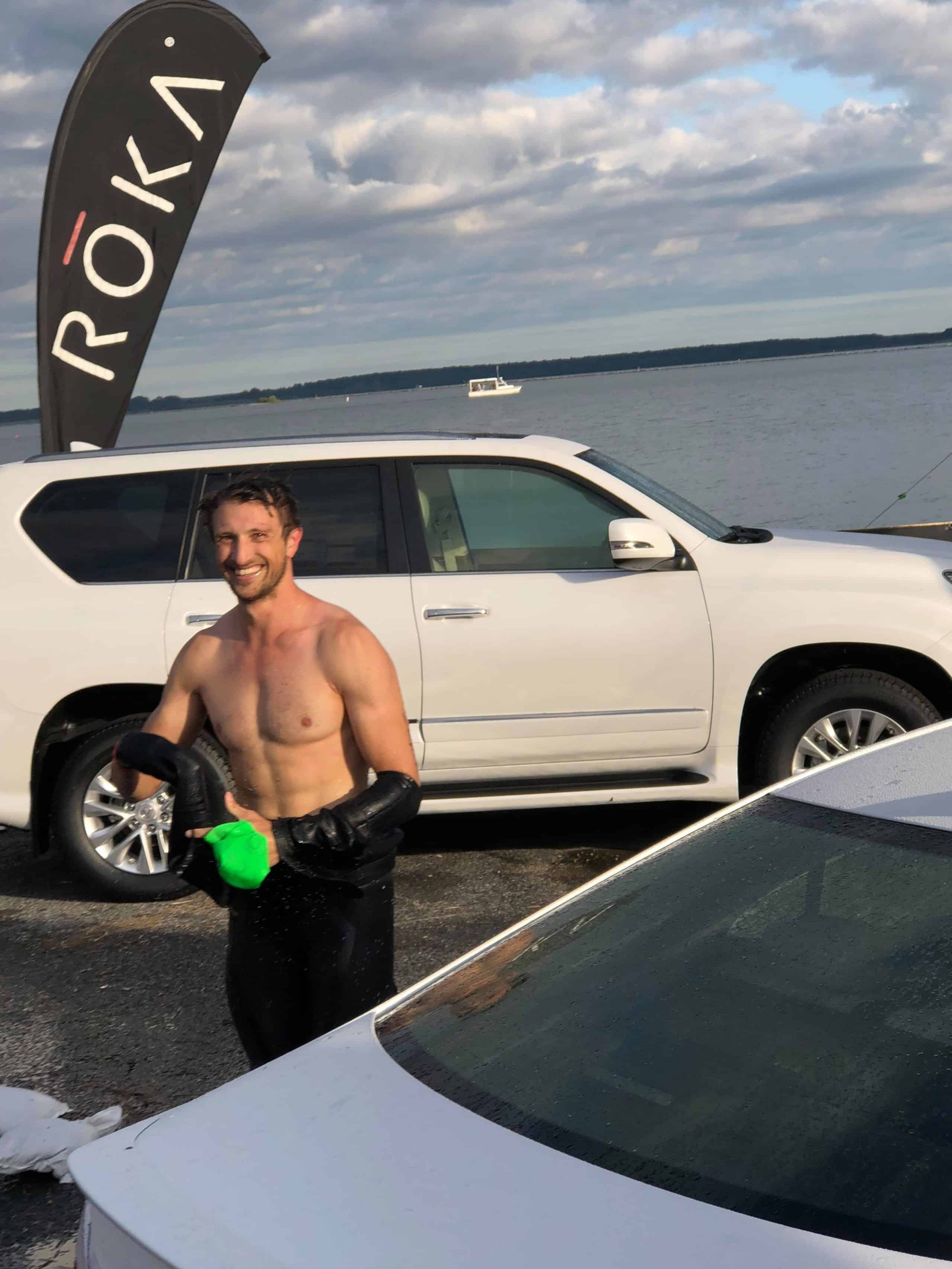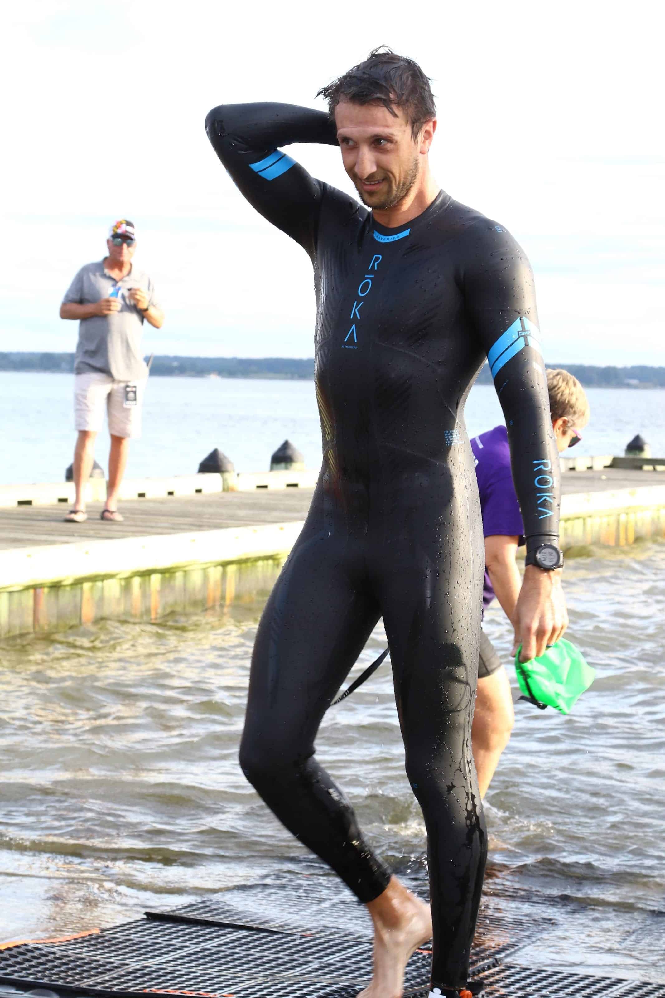 Running out of the water, I was guided by volunteers who helped unzip my wetsuit once I emerged.