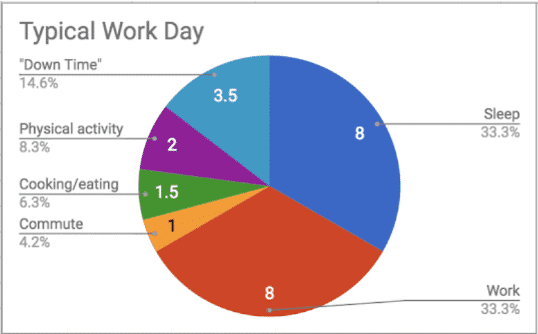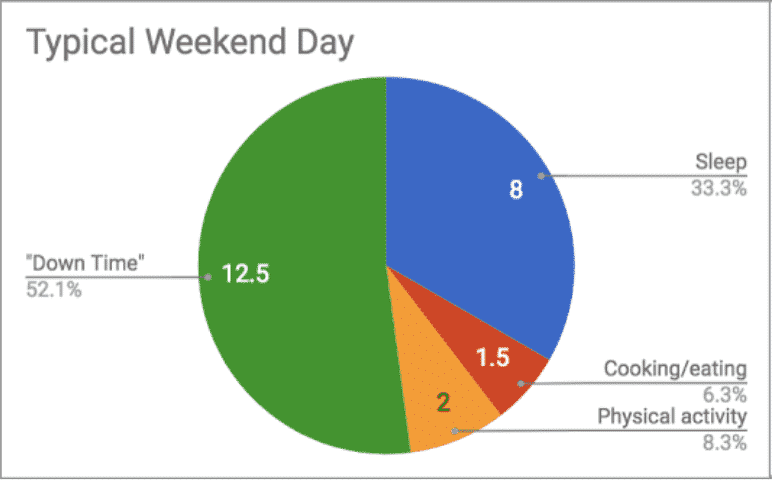 That’s 3.5 hours of downtime on a work day. If you remove the 8 hours of work and 1 hour commute for weekends, that’s up to 12.5 hours of ‘free time’ on weekends.